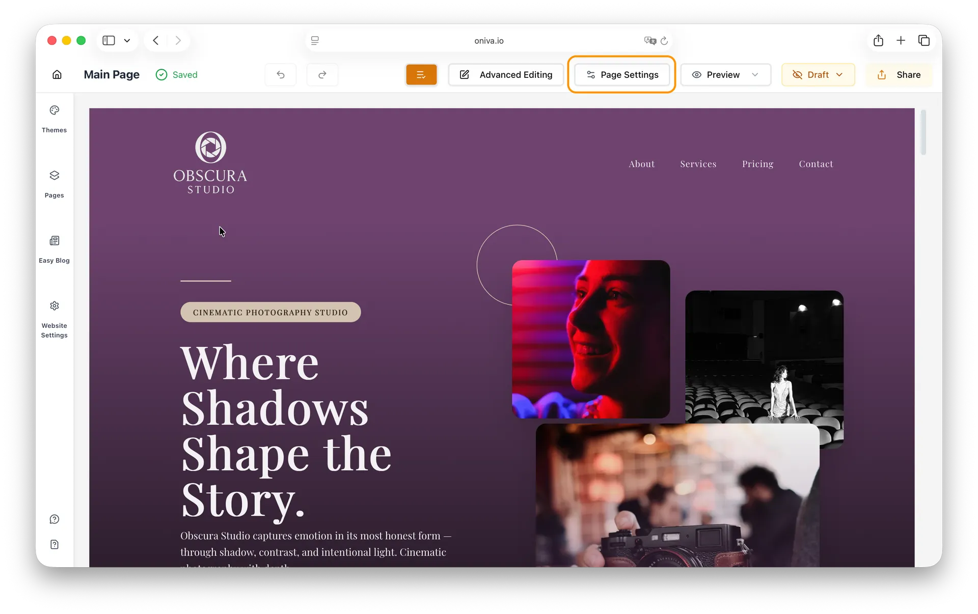 The Page Settings feature lets you control how your website appears in search engines and on social media platforms. With Oniva.io, you can customize page meta titles, meta descriptions, and preview how your site will look when shared, helping you attract more visitors and improve your site’s visibility.